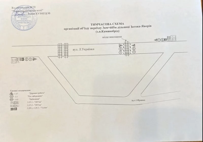 Від сьогодні, 12 жовтня, будуть проводитись роботи з заміни переїзного насипу (асфальтування) в межах залізничного переїзду 3 км + 605 м дільниці Затока – Яворів у селі Кам’янобрід. Про це повідомили у Львівській ОВА.