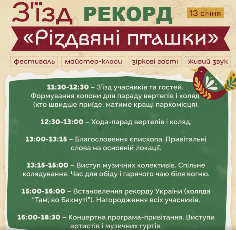 Під час з’їзду встановлять рекорд України з виконання коляди найбільшою кількістю вертепів. Для цього обрали колядку “Там, во Бахмуті”.
