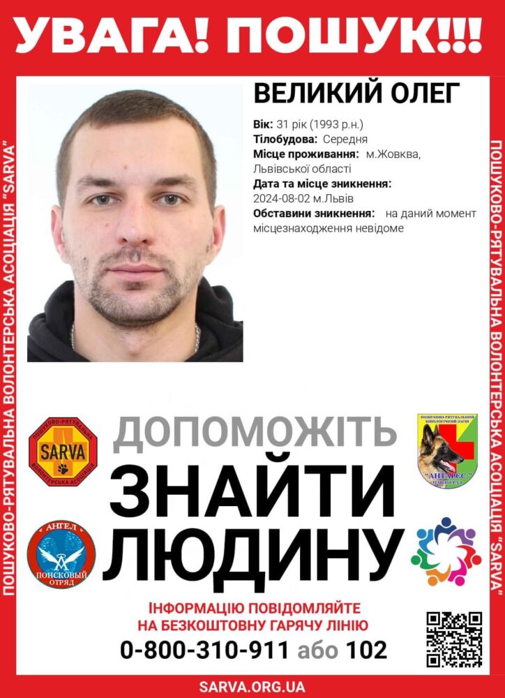 - Дата та місце зникнення: 2024-08-02 м.Львів