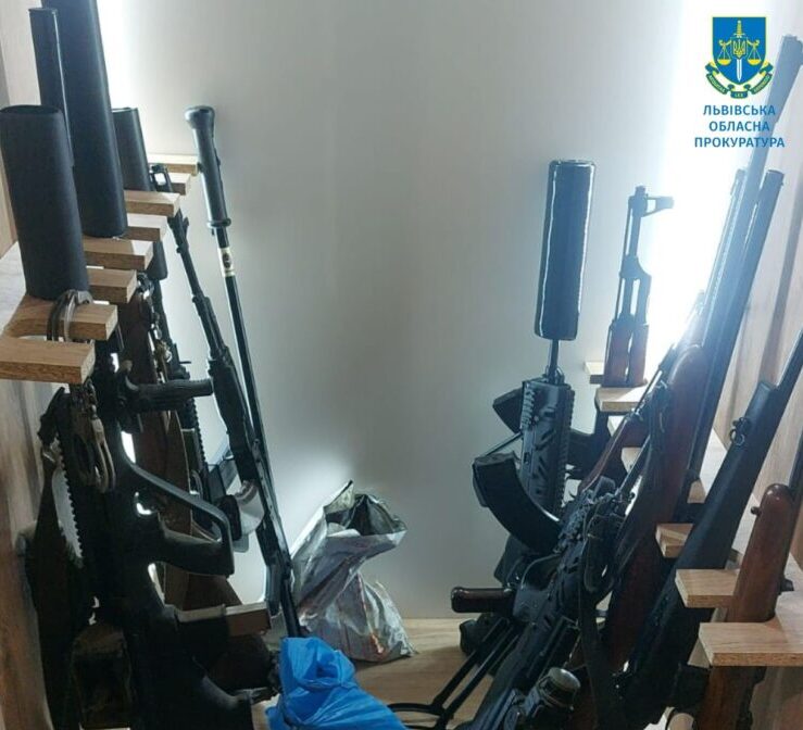 В ході проведених обшуків вдома у підозрюваних знайшли 72 пістолети, 20 автоматів, 29 гранат різних типів із запалами, майже 49 тисяч набоїв різних калібрів та комплектуючі до різних видів зброї. Крім цього, вилучено майже 10 млн грн.