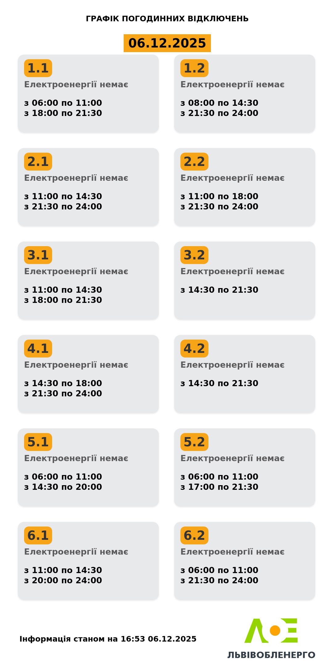 На Львівщині знову оновили графік відключень світла на сьогодні | Львівська мануфактура новин