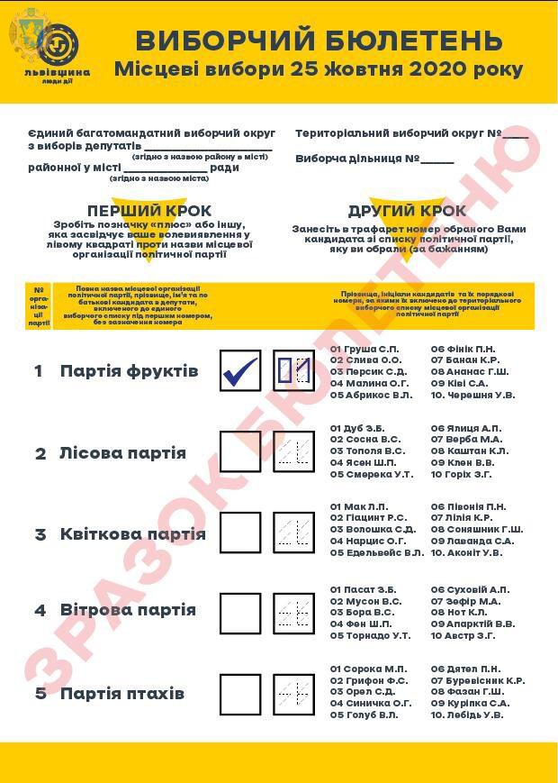 ВАЖЛИВО: голос виборця точно НЕ буде зараховано, якщо виборець проголосує за кандидата, але не поставить позначку за партію або ж поставить позначки навпроти декількох партій.