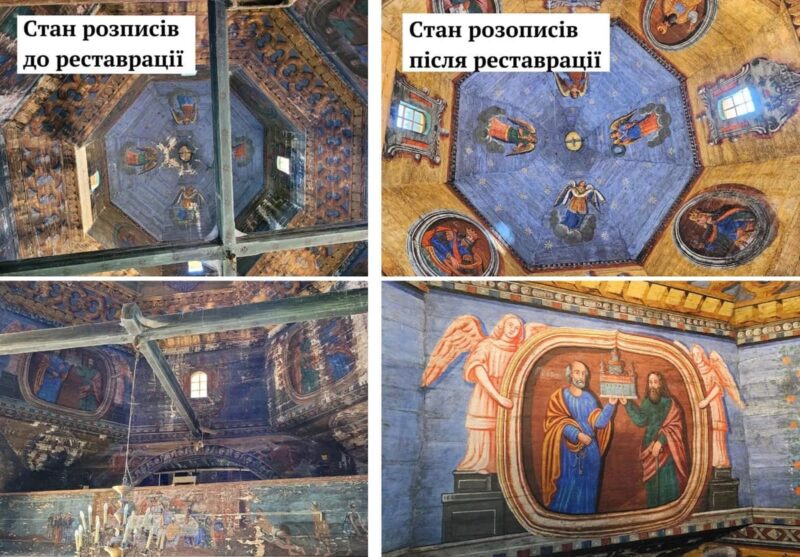 “Відтак до відновлення церкви залучили найкращих студентів-реставраторів зі Львівського державного коледжу декоративного і ужиткового мистецтва імені Івана Труша. На чолі із художником-реставратором вищої категорії вони наразі продовжують працювати над тим, щоб укріпити, видалити шари бруду та відкрити автентичну колористику давніх розписів”,- йдеться в повідомленні.