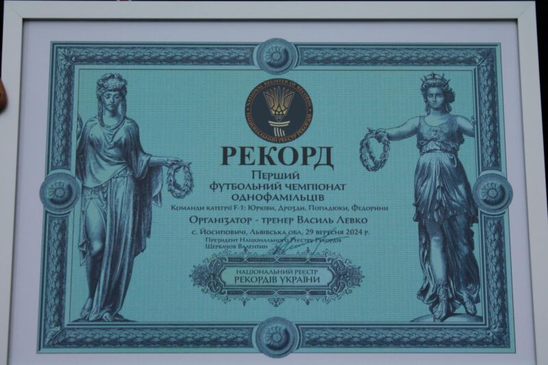 В неділю, 29 вересня, на стадіоні «Арена» у селі Йосиповичі відбувся перший футбольний перший чемпіонат України серед команд категорії F-1, тобто змагалися фамільні команди. Про це повідомили в Управлінні молоді та спорту Львівської ОДА.