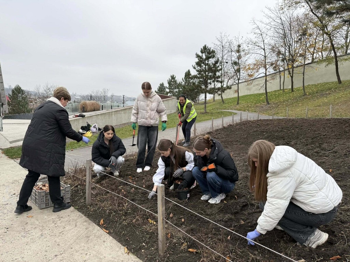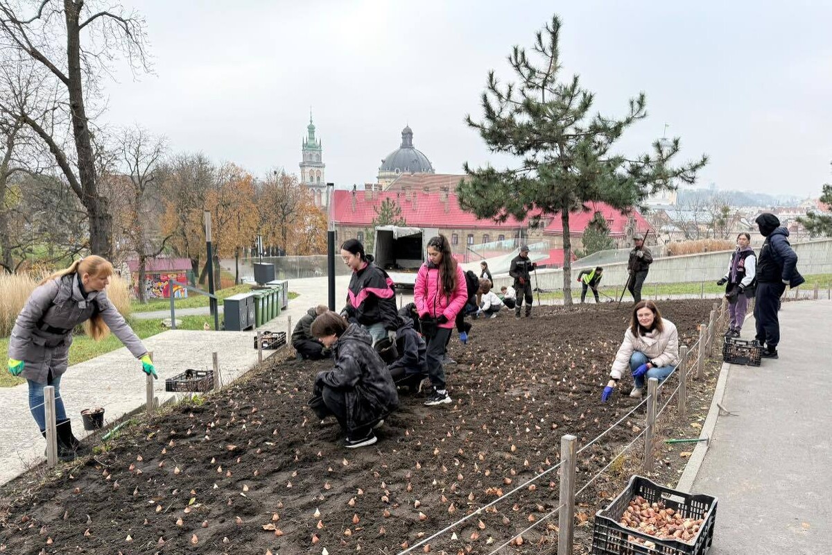 Сьогодні до висадки цибулин на Меморіалі пам’яті Героїв Небесної Сотні у Львові долучились студенти екологічного коледжу Львівського національного університету природокористування.