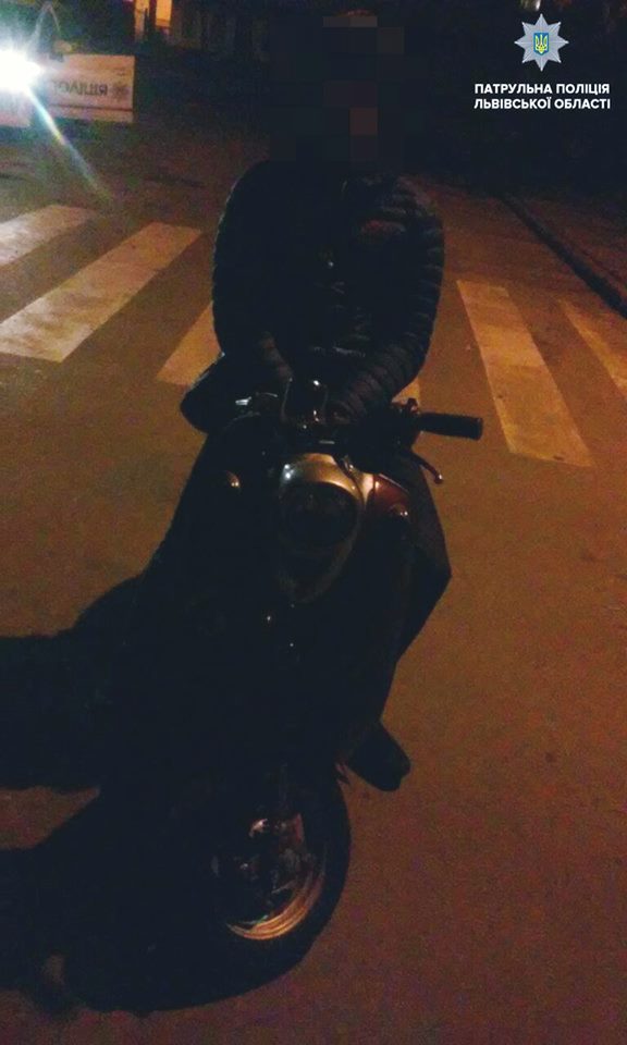 Вночі патрульні зупинили скутериста, який їхав без мотошолому