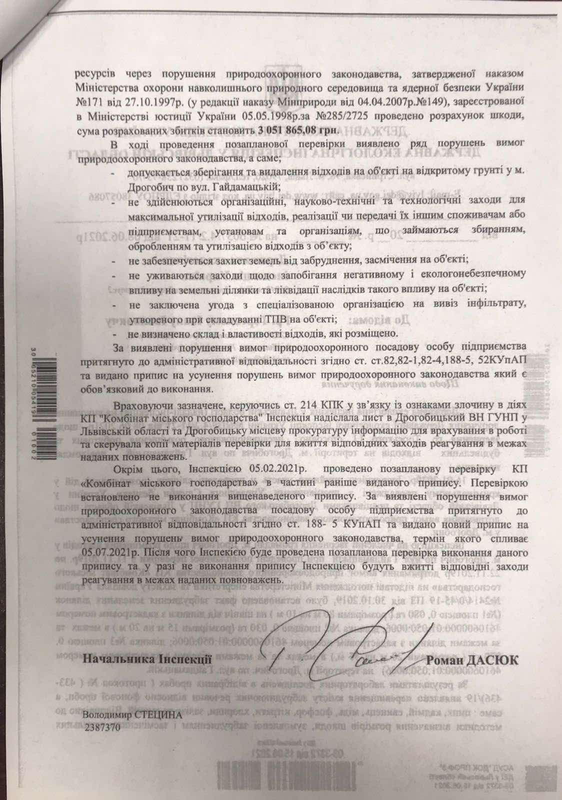 Мова йде про одного з місцевих ФОПів, який протягом тривалого часу звозив побутові відходи на одну з ділянок неподалік Стебника. У лютому минулого року поліція затримала винуватця і відкрила кримінальне провадження. Дрогобицький міськрайонний суд своїм рішенням визнав провину обвинуваченого і присудив йому сплату штрафу – 34 тисячі гривень, а також відшкодування завданих збитків Дрогобицькій міськраді у розмірі 304 тисячі гривень. У суді підприємець свою вину визнав і запевнив, що сміття з ділянки вивіз.