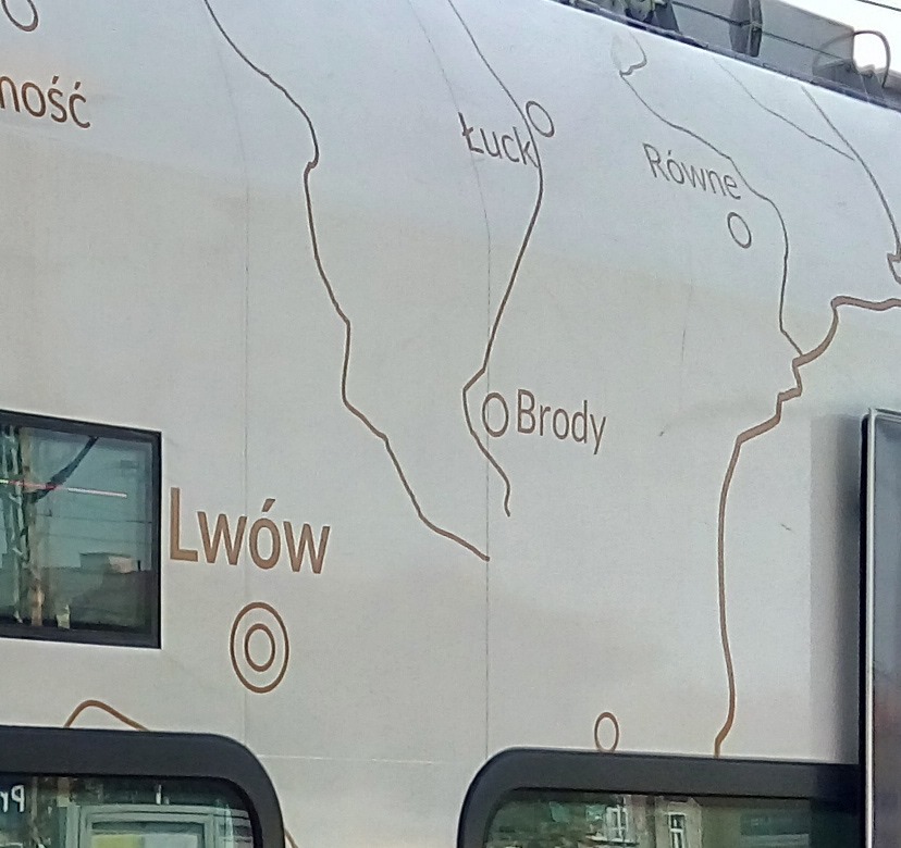 Вчора, 31 серпня, у Польщі почала курсувати електричка зі зображенням мапи міжвоєнної Польщі. Тож на транспорті в складі Польщі зображені й західноукраїнські міста, зокрема Львів.