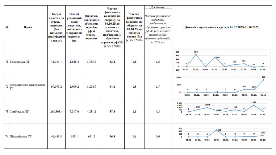 Загалом 18 громад області витратили на оборону менше ніж 5% свого бюджету.