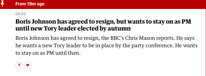 Повідомляють, що про відставку Борис Джонсон оголосить сьогодні ввечері.