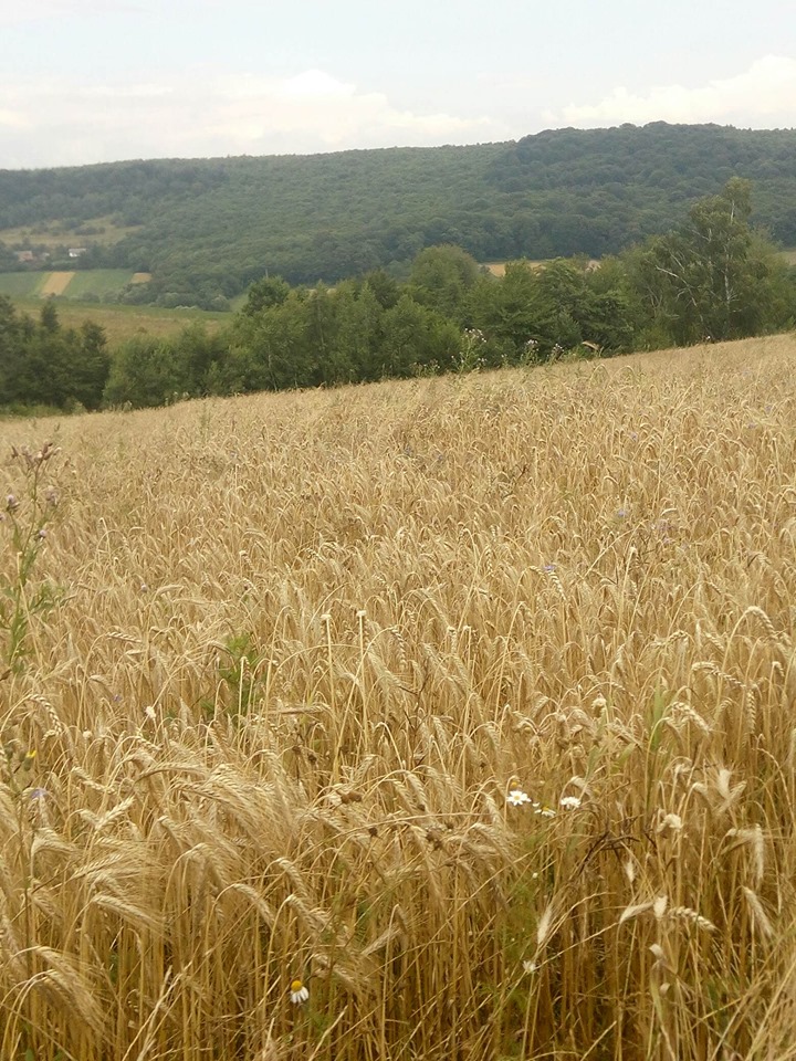З жінкою їдемо далі селом. Звертаю увагу, що багато обробленого та засадженого поля – лани пшениці, картоплі, кукурудзи, зовсім нема борщівника.