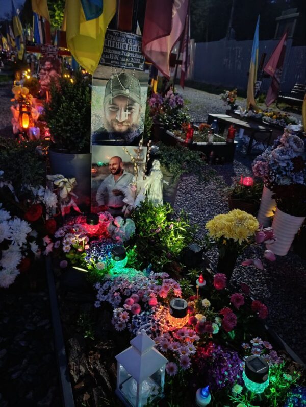 “Ми були такі унікальні. Ми дуже сильно відрізнялися, що від моєї сім’ї, що від його сім’ї. У нас було зовсім інше бачення світу, життя. Ми ніколи не прагнули до здобутку якогось майна, ми не прагнули заробити великі кошти, ми більше прагнули провести більше часу разом… Коли я отримала сповіщення про його загибель, перше, що мені приходило в голову, що, напевно, він буде себе винити, бо буде розуміти, що я буду одна, що я ні з ким цього не розділю. Я дуже боялася, що він буде десь там, в тому кращому світі, мучитись, що він буде страждати. Мені було важливо його побачити наодинці і поговорити з ним. Я добивалася впізнання в морзі. Все ж мені вдалось туди попасти і я встигла з ним поговорити. Я сказала йому, що дуже сильно ним пишаюся, і що я зі всім справлюся, щоб він просто відпочивав від того пекла, в якому він перебував. І скільки б я зараз не хотіла здатися, я собі цього не дозволяю тільки через те, що я йому пообіцяла. Хоча тепер життя важко назвати життям. Це швидше якесь існування. Я втратила будь-яке відчуття в тому житті. Тобто я не відчуваю ні радості, ні щастя, нічого , – ділиться дружина. – Але мені завжди було важливо нести про нього пам’ять. Я хотіла щоб його знали. Щоб ті, хто його не встиг при житті знати, знали, що такий був. Тому що людину з таким великим та добрим серцем не часто таких зустрінеш. І я кинулася в те, щоб нести про нього пам’ять. Це були різноманітні інтерв’ю, забіги пам’яті, висадка дерев, на сьогоднішній день у Львові вже є два дерева, посаджені на його честь. Це був риболовний турнір. Кожного разу намагалася зробити щось таке, щоб про нього нагадати, щоб його пам’ятали… Я розуміла, що я маю нести про нього пам’ять, нагадувати про нього. Ці найважчі періоди вже пройдені. Протягом півтора роки я щоденно була на цвинтарі, кожного-кожного дня. Десь вже після цього я вже трошки змусила себе вийти звідти, зараз я стараюся так три-чотири рази на тиждень приходити, доглядати за його могилою, кожного разу щось пересаджую, хочу щоб там буянили квіти, щоб там було все по живому, щоб там було доглянуто».