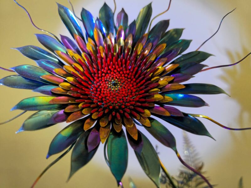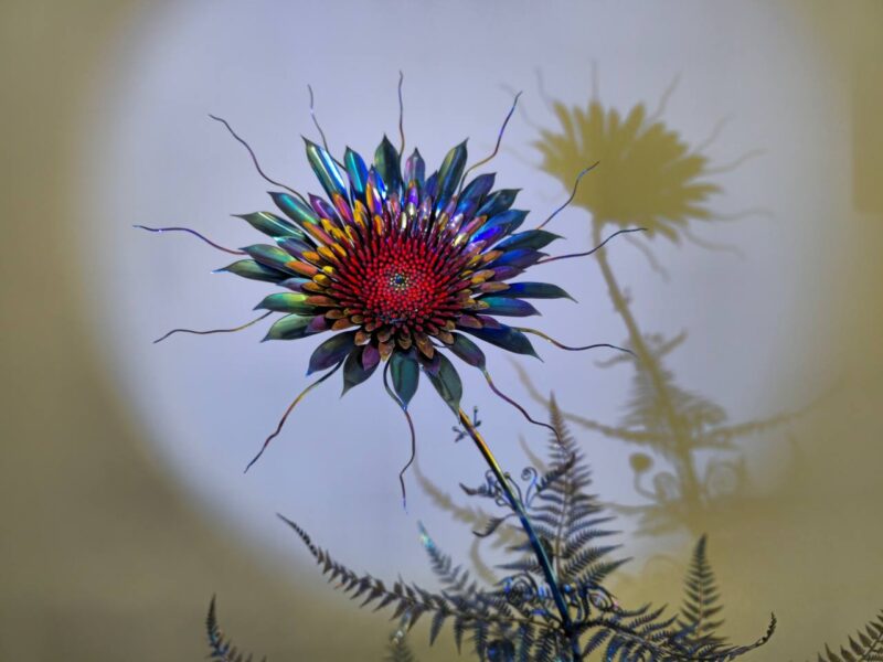 Одна з найвизначніших робіт — «Квітка папороті», якій пан Олександр присвятив понад три роки. За його словами, ніякий інший метал, окрім титану, не підходить для цього виробу, адже саме він набуває ідеального синього кольору. Проте його дуже важко обробляти.