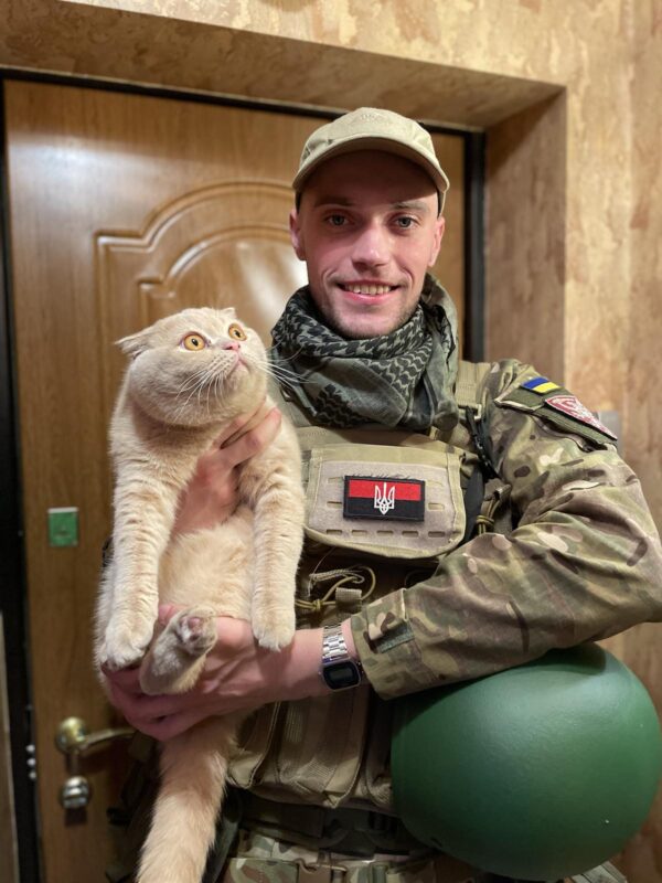 «Міша в той момент вже був на Луганщині. А моя подруга розповіла мені, що в її кішки народились котенята. Я кинула синові фото тих котенят і спитала, чи він хоче одного. Але кажу: «Вони аж на півдні Миколаївської області, якось треба організувати перевіз того котика». І він, такий радий, каже: «Організовуй, я оплачу». І ми то все організували. Міша тоді приїхав на ротацію, кіт приїхав перед ним, і це була в них така любов з першого погляду, вони один одного відразу дуже полюбили», – пригадує мати Михайла.