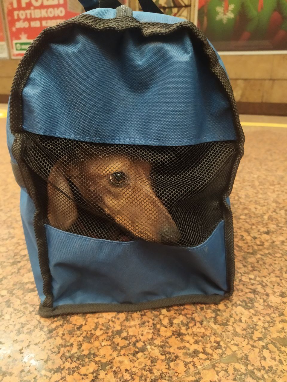 Перші вибухи Дафна почула разом зі мною. Я боялася, що її просто «заклинить», що вона стане тією самою собакою, яка здригається від кожного хлопка дверей. Але виявилося, що в укритті вона почувається досить стабільно. Вона спить у клітці чи в мене на колінах, переконується, що всі її люди на місці, і заспокоюється.