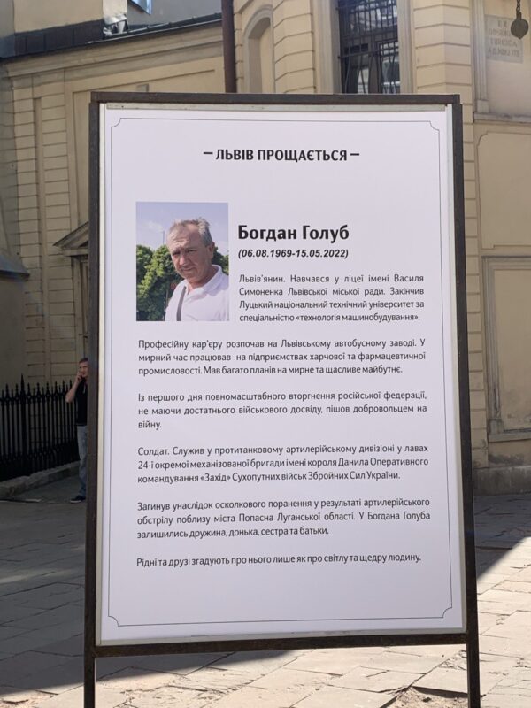 “Є фраза, “Герої не вмирають”, але вони помирають. З часом вони залишаються лише в пам’яті своїх рідних людей. Меморіальні таблиці – це можливість нагадати іншим, що хтось воює для того, щоб інші могли жити. Найгірше, це бачити і розуміти, що чоловіки, яким 30, 40 років втікають, ховаються, а не йдуть захищати державу, в якій живуть їхні діти, батьки чи друзі. Можливо, коли вони бачать таблицю пам’яті на своїх під’їздах чи школах, в них прокинеться совість, якщо вона взагалі є”, – каже дружина Богдана Голуба.