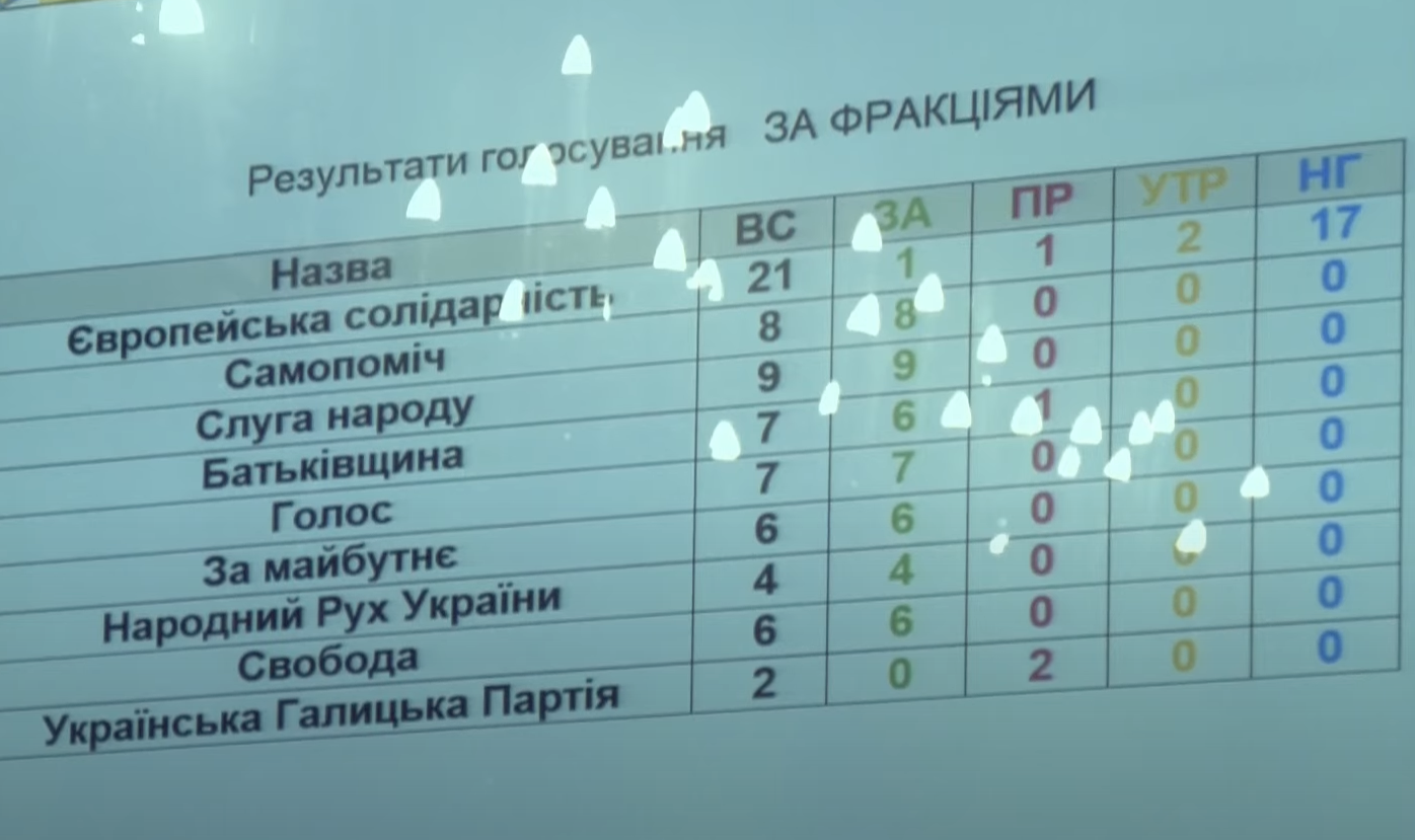 Після звіту, запитань та обговорення депутати ініціювали перерву на 10 хвилин для наради з керівниками фракцій. Однак повернулись вони з перерви за 35 хвилин. Задовільною роботу Гримак визнав лише 21 депутат. Незадовільною — 47 депутатів. Тож роботу голови облради визнали незадовільною.