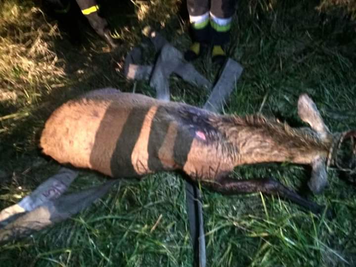 Рятувальникам, за допомогою мотузки, вдалось витягти оленя на поверхню.