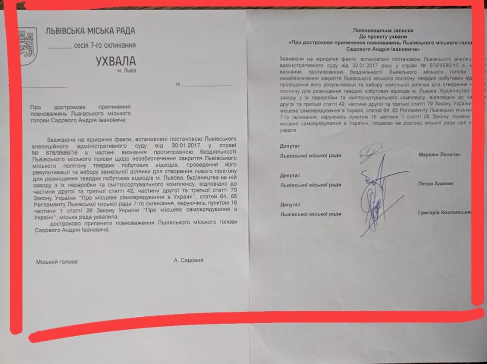 Про це повідомив сам Андрій Садовий у Фейсбук.