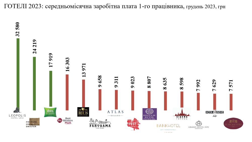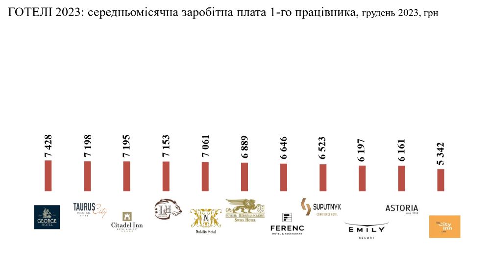 При цьому, торік мінімальна заробітня плата в Україні становила 6,4 тис. грн. Тобто, ці готелі офіційно платили працівникам на рівні мінімальної зарплати і навіть нижче.