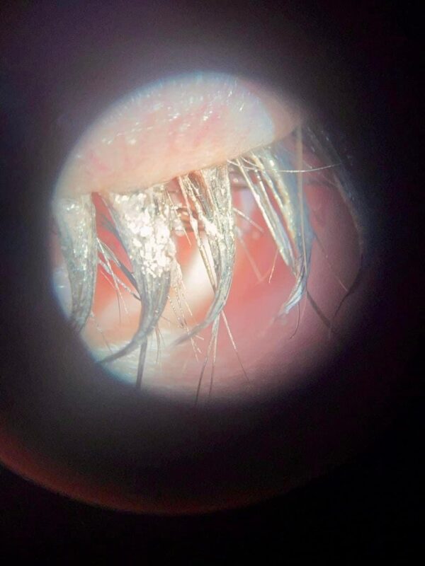 Із набором цих скарг дівчина звернулась до офтальмологів «Охматдиту». Після огляду та обстеження фахівці зʼясували, що нарощення спричинило індивідуальну реакцію (непериносимість) у дівчини, що проявилось у вигляді випадіння вій разом з білим клейким нальотом, а подальше використання олійки лише погіршило цю ситуацію.