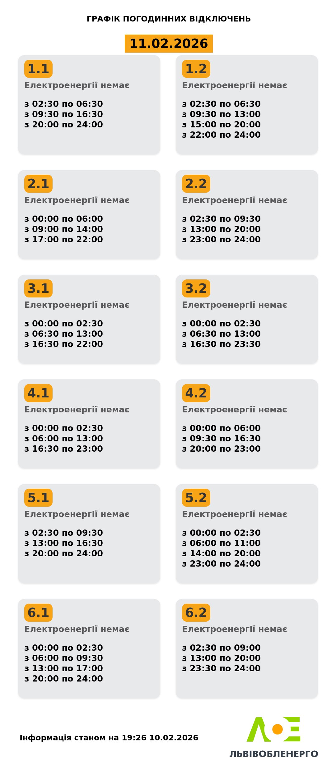 Актуальний графік (станом на 19:26 10 лютого)