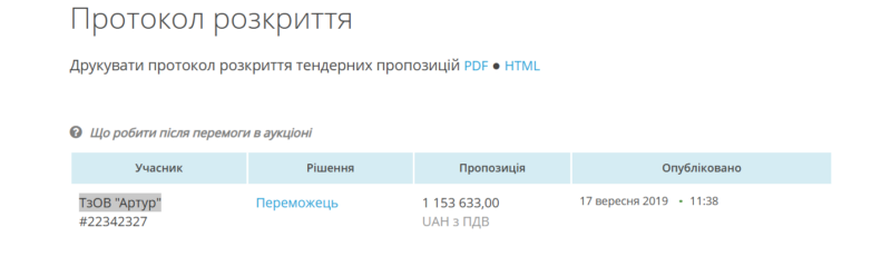 В системі Prozorro виконавцем цього тендеру на 1 153 633 гривні вказано ТзОВ “Артур”. Його кінцевим бенефіціарним власником є Василь Близнак з Буська.