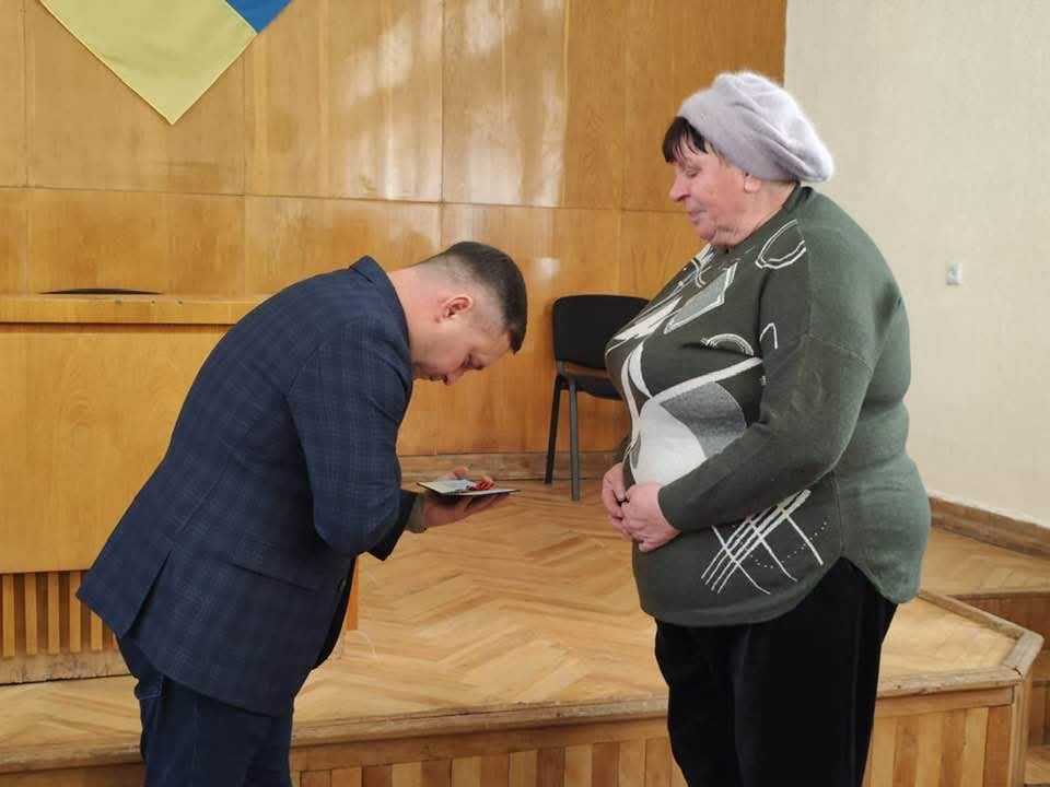 нагрудним знаком «Золотий хрест» — солдата Прийму Романа, жителя міста Золочів.