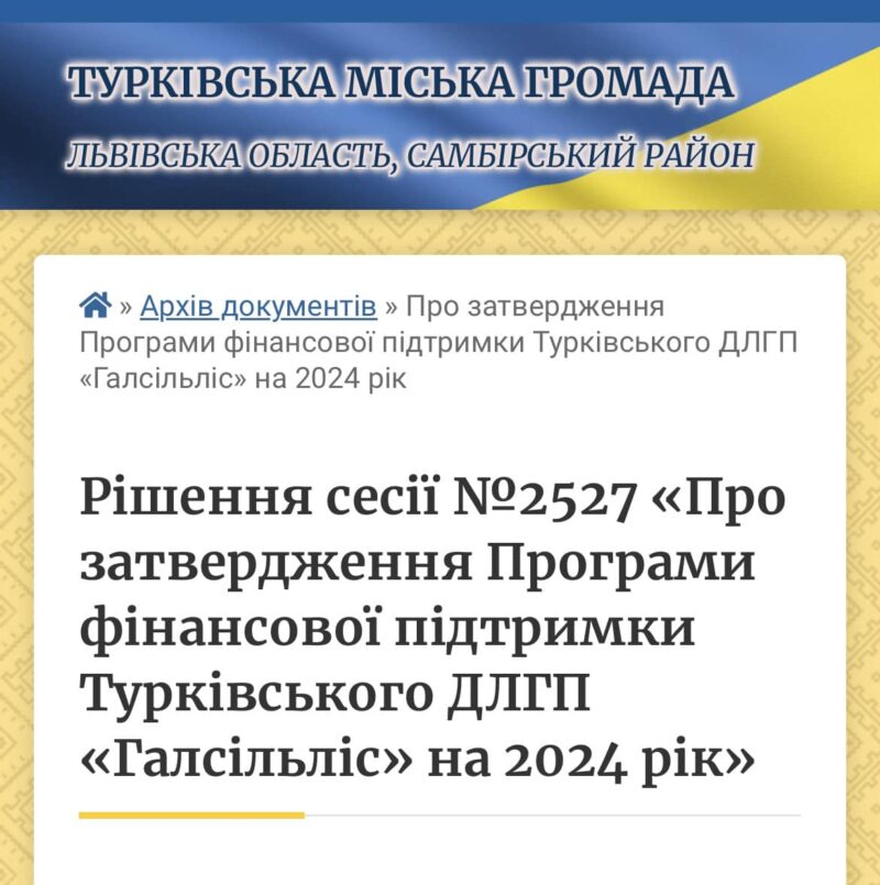 Відомо, що директор Турківського ДЛГП «Галсільліс» звернувся до Турківської міськради з проханням профінансувати підприємство. Дане рішення, вартістю 1 мільйон гривень, розглянули та погодили на сесії 18 січня 2024 року.