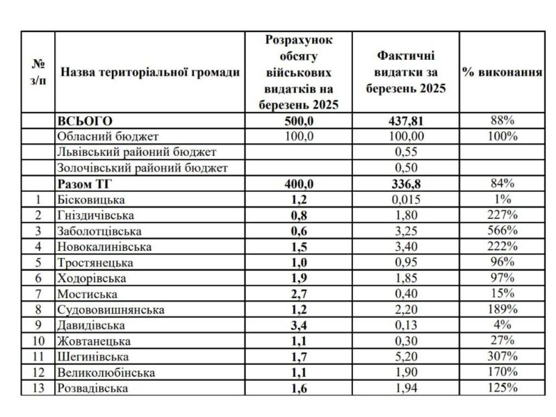 “Так, це не 500, але, для порівняння: за січень-лютий область спрямувала на підтримку воїнів 328 млн, з яких 182 – з обласного бюджету. Одразу наголошу: видатки від громад у плані на березень формували справедливо – залежно від частки бюджету кожної громади в зведеному обласному бюджеті”, – пояснив Максим Козицький.