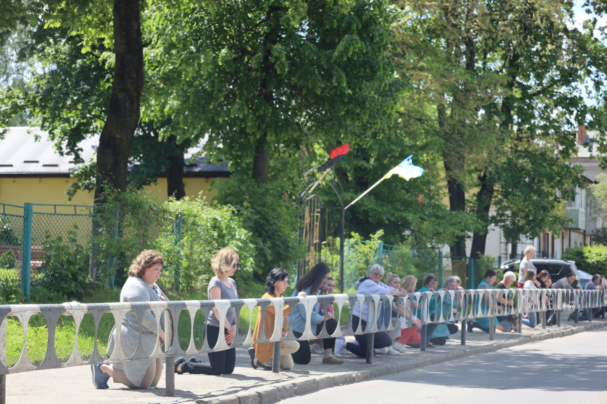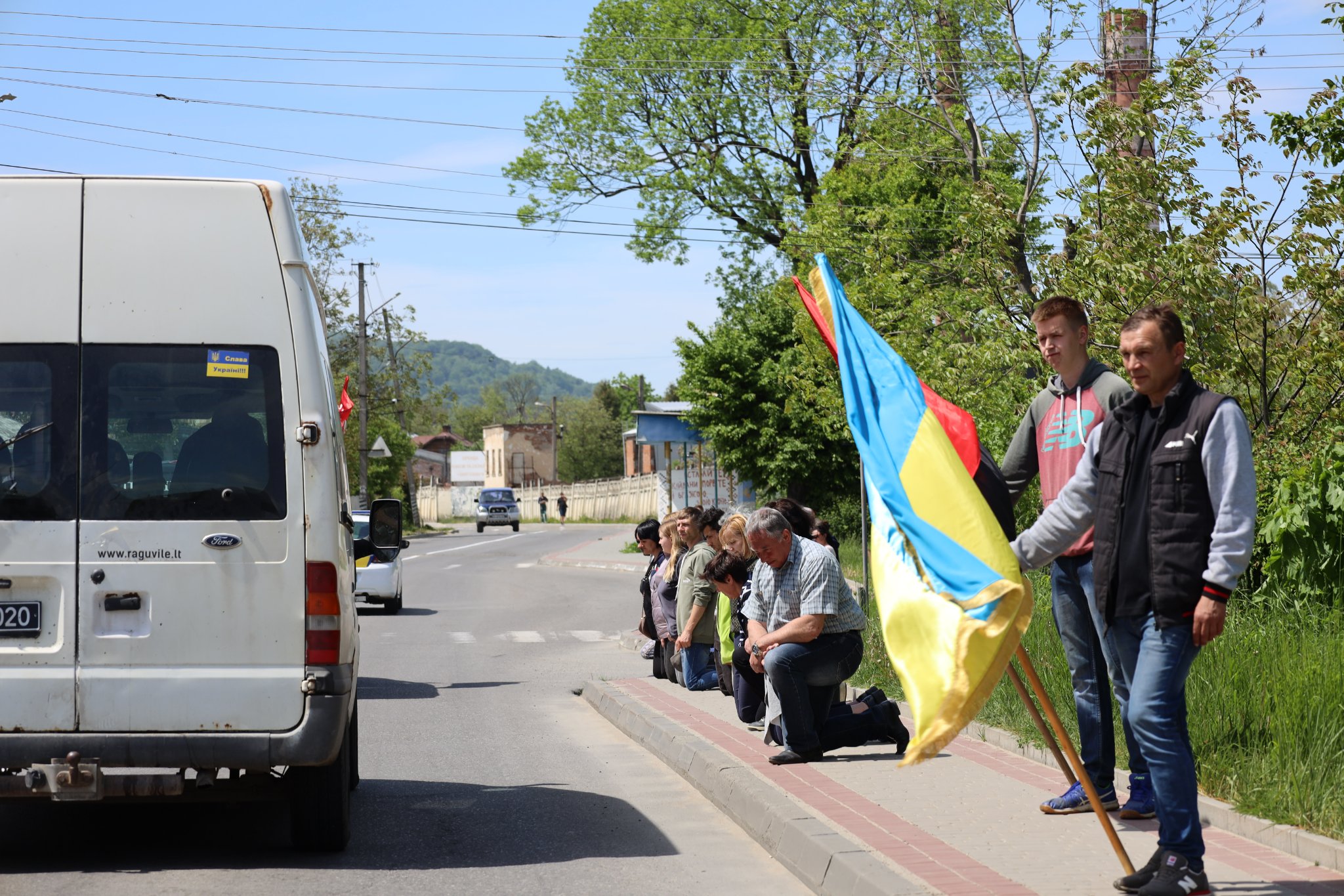 Сьогодні, 20 травня, навколішки кількакілометровим живим ланцюгом шани й пам’яті Бориславська громада зустрічала траурну колону з тілом загиблого Героя Юрія Багнія