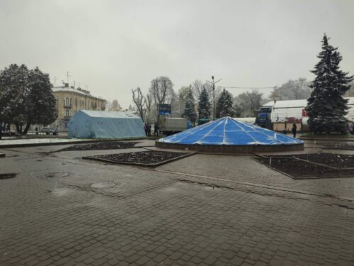 У Дрогобичі облаштували перший пункт обігріву. Як повідомили у Дрогобицькій міській раді, його розгорнули на площі Тараса Шевченка, біля фонтану, на час зимового періоду.