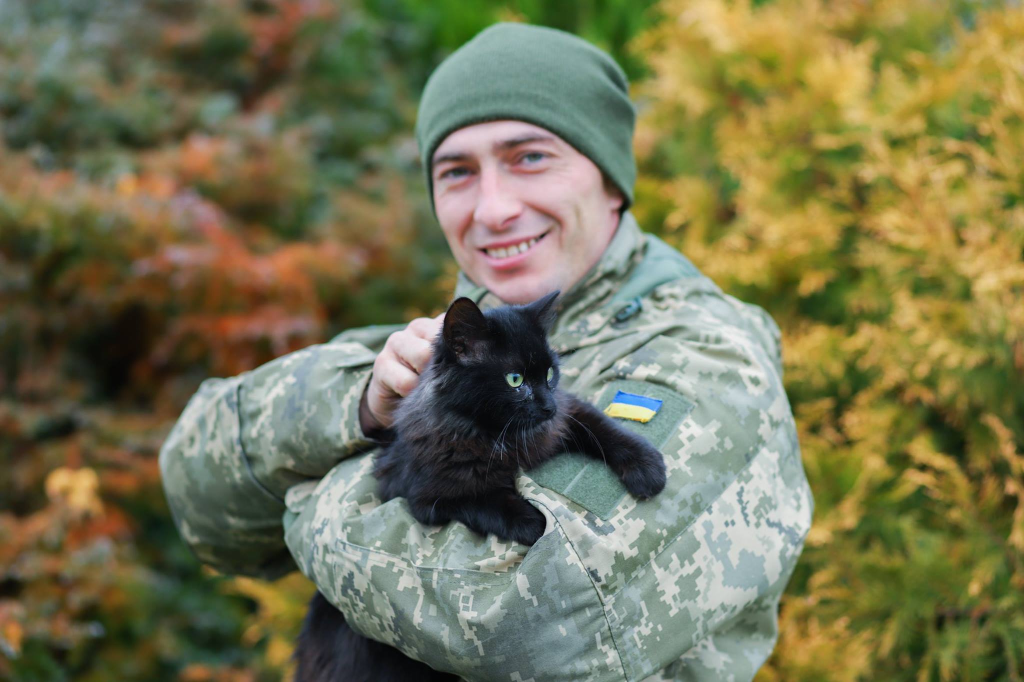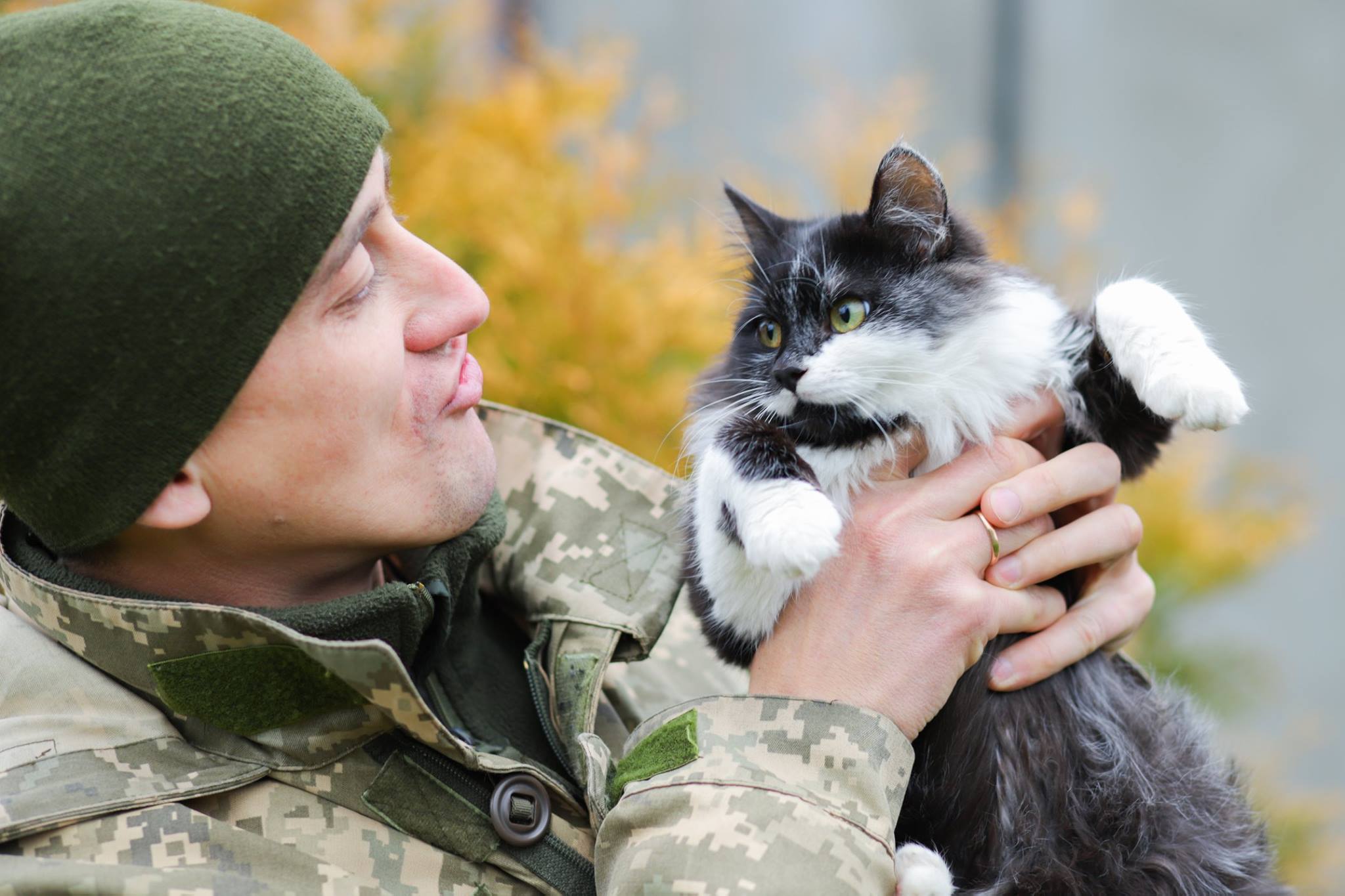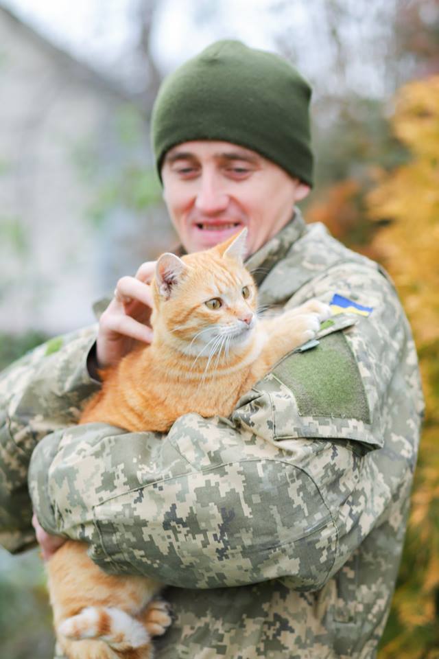 Зоозахисники з міста Кам`янка-Бузька організували незвичну фотосесію. Знимкували воїнів АТО, які тримають на руках бездомних котів та собак. У такий спосіб хочуть привернути увагу до тварин, які не мають господарів.