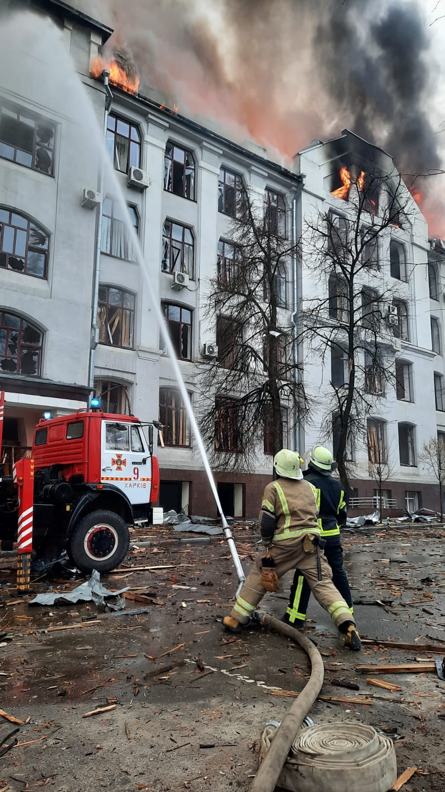 Як повідомляє ДСНС України, вранці, 2 березня близько 08:10 у м. Харків внаслідок ракетного удару по будівлі СБУ у Харківській області, ГУ Нацполіції у Харківській області та будівлі Харківського національного університету ім. В. Н. Каразіна попередньо постраждало 3 особи.