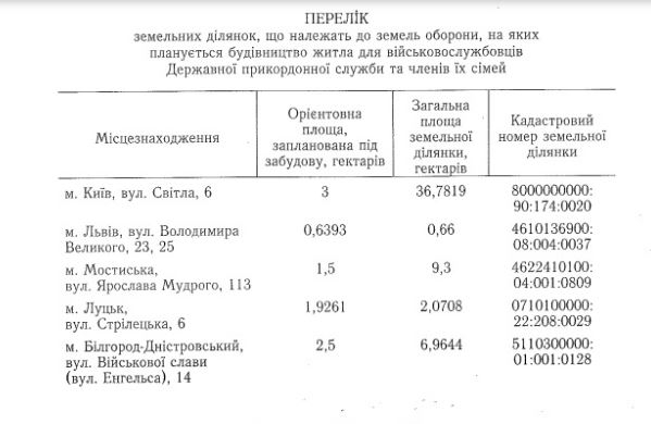 Півтори гектари у Мостиськах і 0, 6 га у Львові – саме стільки дістанеться прикордонникам. Кабінет міністрів погодив перелік земельних ділянок, на яких збудують житло для прикордонників і їх сімей. Відповідне розпорядження оприлюднив РБК-Україна.
