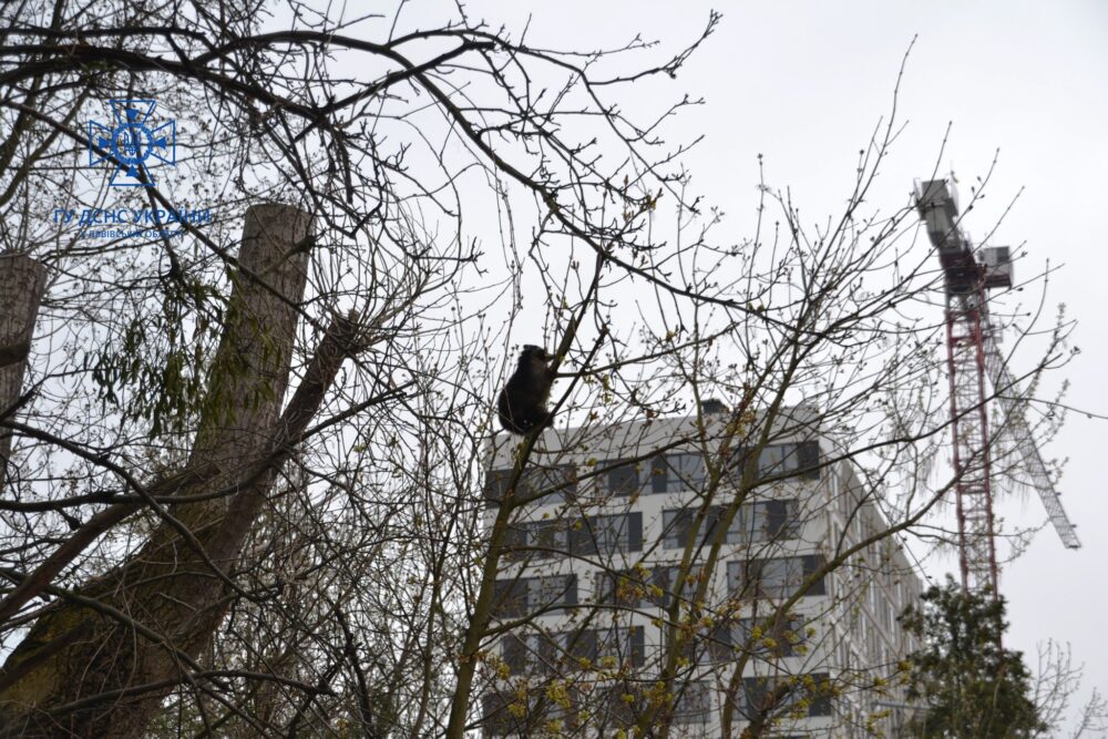 «По прибуттю до місця виклику з’ясувалось що єнот знаходиться на дереві, на висоті близько 10 м. Аби врятувати тварину надзвичайники спільно із зоозахисниками зняли єнота», – йдеться в повідомленні