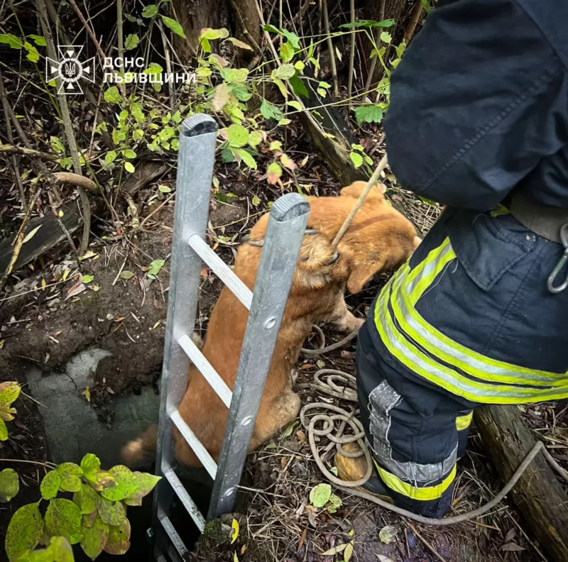 Тож надзвичайники за допомогою висувної драбини спустились в колодязь, а далі, обв’язавши пса рятувальною мотузкою, підняли на поверхню.