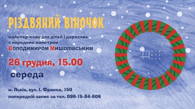 “Різдвяний вінок – особливий елемент новорічного інтер’єру, що був запозичений із Західної Європи. Це не лише прикраса, а й оберіг. Якщо повісити такий вінок на двері, то він обов’язково захистить Тебе і Твою сім’ю від усіляких бід та негараздів, принесе щастя і достаток”, – йдеться у повідомленні організаторів.
