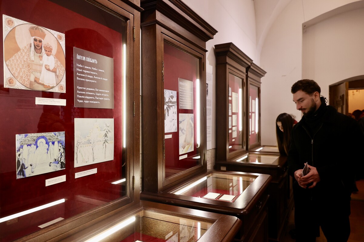 Експозиція різдвяних листівок Олени Кульчицької, яка передає атмосферу Різдва минулого століття.