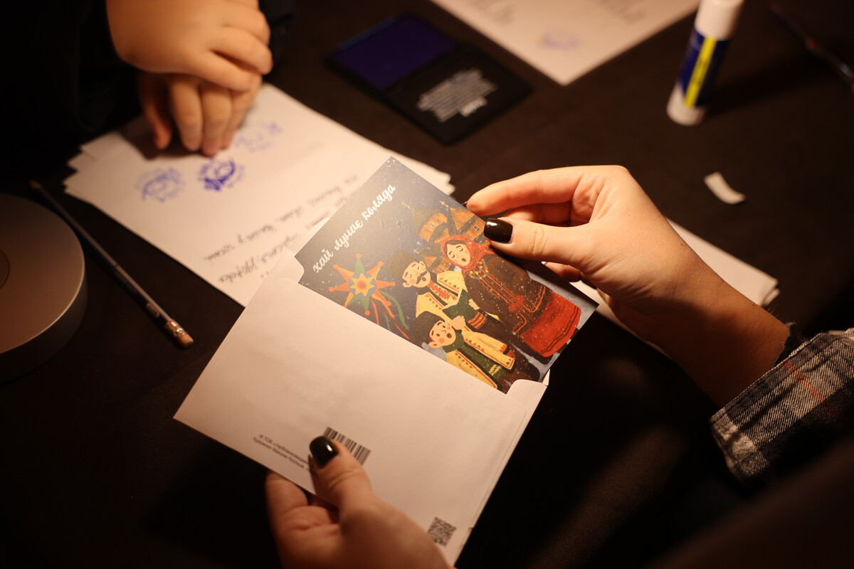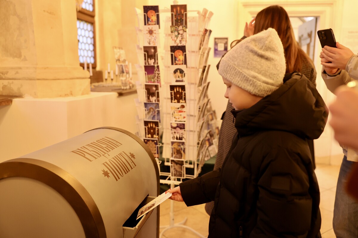 «Цього року Різдвяну пошту відвідало вже 600 гостей, понад 300 листів вже полетіло до США, Ірландії, Швеції і навіть до Китаю, гості з Китаю тут також були. Тут, у палаці Бандінеллі, можна підписати листівку, запакувати її в конверт, почепити марку, дуже важливо, щоб відповідна марка була для листівок по Україні та за кордон, адже залежить куди ви її надсилаєте. Листівки ви можете обрати з дуже великої кількості робіт від майстрів з усієї України, і покласти у скриньку. Також цього року ми просимо відзначити на карті куди ж летять листівки, тому що ми хочемо бачити географію вітань. На папері залишають люди позначку, якщо надсилають листівку за кордон. На стіні листівки залишаються для наших військових, правда не всім захисникам можна надіслати листи, бо не всюди є поштові адреси або їх не можна розголошувати. Однак кожну листівку з цієї “підвішаної” зони ми заберемо і передамо нашим захисникам і захисницям», – розповідає Христина Лебедь, керівниця управління туризму Львівської міської ради.