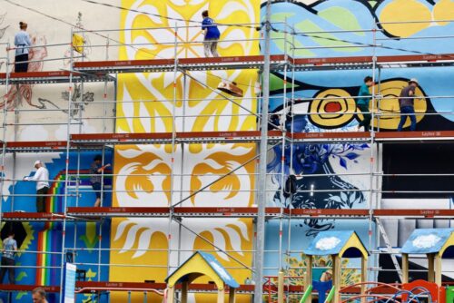 «Томас, аташе з питань культури Литви в Україні, пів року тому запропонував мені створити проєкт в Україні. Я запропонував зробили мурал так, як ми це робимо впродовж 11 років в Литві. Я запрошу митців і вони створять мурали разом з волонтерами. Це дуже важлива частина, робити мурал з місцевими волонтерами, які дуже нам допомагають. Коли я залучав художників для литовського проєкту, я також питав їх, чи вони б не хотіли поїхати ще й в Україну. Так, були деякі митці, які сказали: «Ні, вибач», бо вони не відчувають, що це достатньо безпечно їхати до Львова. Але також інші художники сказали: «Звичайно! Я приїду в Україну!» Я вважаю, що це важливо. Ви маєте багато проєктів, коли українські митці їдуть в Європу, щоб представляти країну. Але ще важливіше привозити митців з США, Великої Британії чи інших країн світу, щоб вони попрацювали в Україні, щоб показали свою підтримку», – розповів Рей Барткус, художник і координатор проєкту “MaLonNY”.