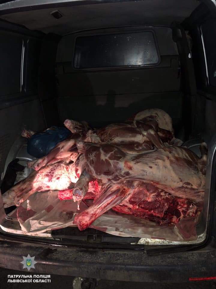 Поліцейських насторожив різкий неприємний запах, що йшов від авто. Коли відчинили дверцята, то побачили в кузові туші тварин.