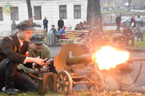 Після Маршу у міському сквері “На Валах” показали військово-історичні “Бої за Львів”. На відтворення цих спогадів про боротьбу січовиків приїхали глядачі з усієї Львівщини.