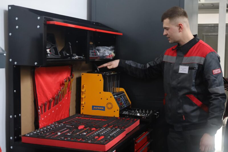 Навчально-практичний центр забезпечили автопідіймачами, практичними стендами для регулювання паливної системи, шиномонтажним і балансувальним обладнанням, системами для обслуговування автокондиціонерів, а також ноутбуками з ліцензованим програмним забезпеченням та іншими засобами діагностики.