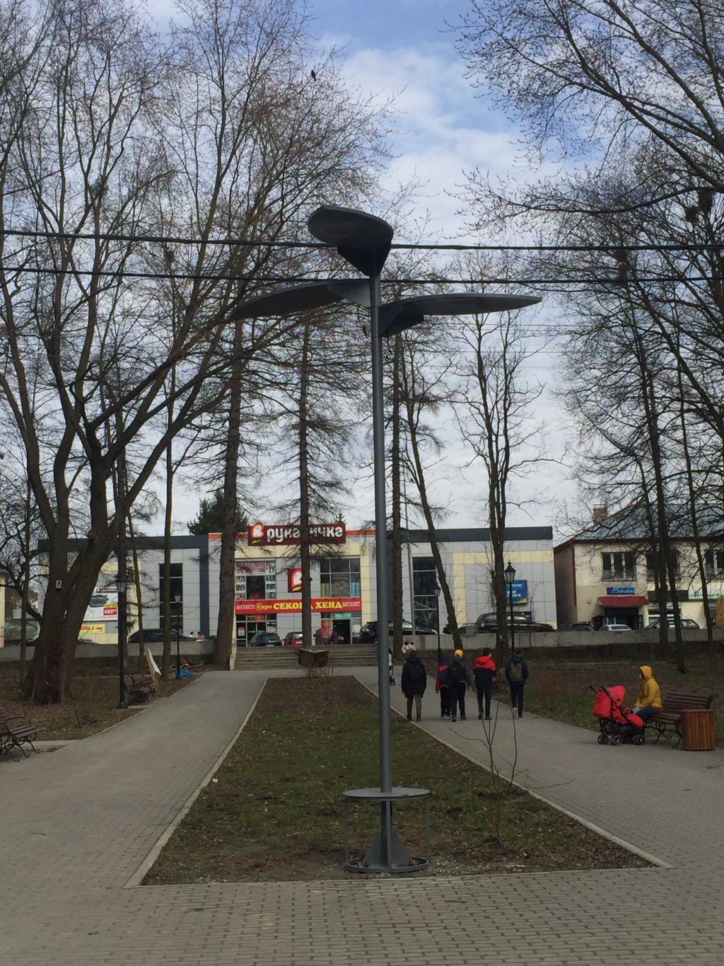 Сьогодні, 27 березня, у Пустомитах встановили «сонячне дерево», яке заряджатиме від сонячних батарей телефони і роздаватиме Wi-Fi.