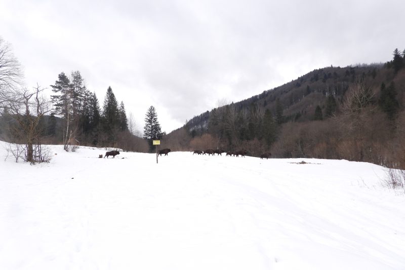 На початок 2026 року чисельність стада становить 51 особину. У рамках програми відновлення виду зубрів завезли на територію парку у 2009–2010 роках. Тоді сюди привезли шість тварин із Парку диких тварин у Німеччині, чотири — з Національного парку “Баварський ліс”, а також одну особину з австрійського Центру відновлення тварин “Маршфельдські замки”. Тварини після акліматизації були випущені з вольєру у дику природу, сформували вільноживуче стадо.