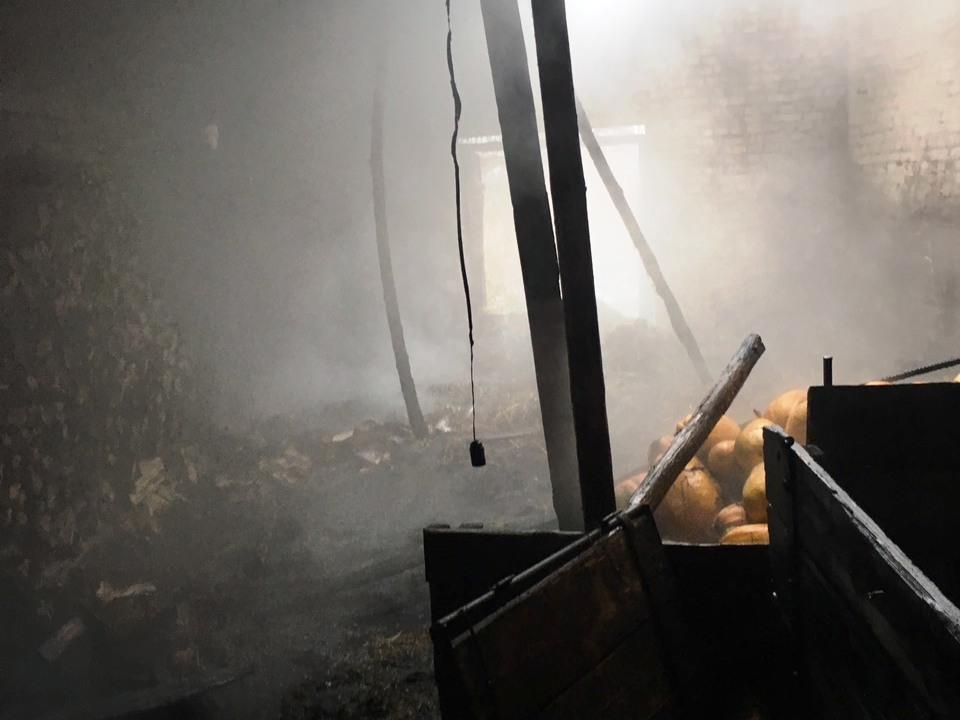 Загорілася цегляна господарська будівля. Коли рятувальники прибули на місце виклику, дах будівлі повністю був у вогні.