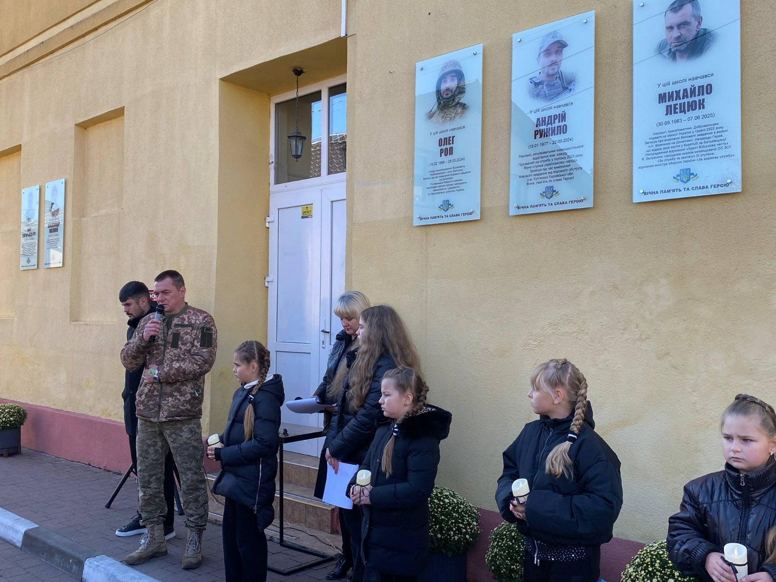 На фасаді Стрийської гімназії імені Івана Баранича відкрили та освятили меморіальні таблиця на честь воїнів, випускників цього закладу освіти – Олега Ропа, Андрія Ружила, Михайла Лецюка, Романа Морквича та Ярослава Яцунди. Про це повідомили у Львівській ОВА.