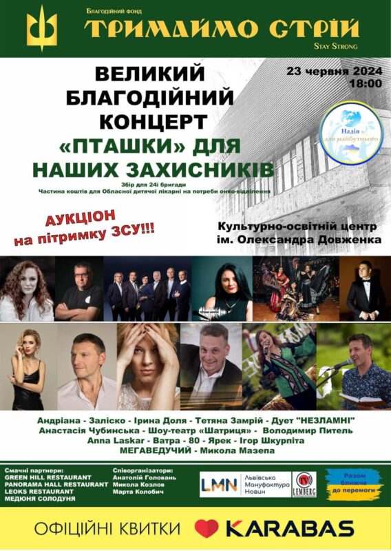 Концерт об’єднає багатьох українських виконавців і триватиме близько трьох годин. Серед них: Андріана, Заліско, Ірина Доля, Тетяна Замрій, Дует “НЕЗЛАМНІ”, Анастасія Чубинська, Шоу-театр «Шатрица», Володимир Питель, Ватра – 80х, Ярек, Ігор Шкурпіта, Anna Laskar. Ведучим вечора буде Микола Мазепа.