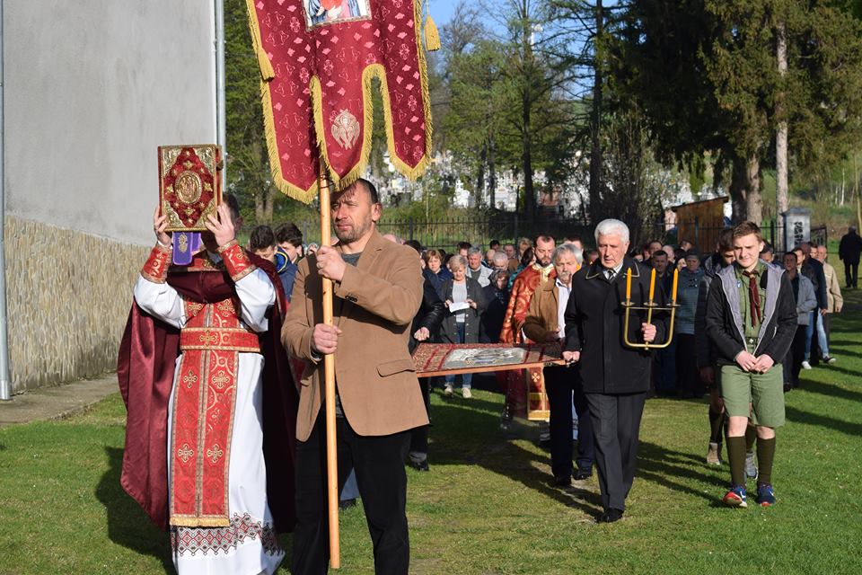 Сьогодні, у Страсну п’ятницю, у старосамбірській церкві Святого Миколая, як і в інших храмах, виставляли плащаницю. Передувало цьому ранкове Богослуження та процесійний обхід навколо церкви. Впродовж двох днів церква буде відчинена, щоб люди могли приходити, коли кому зручно, аби поклонитися Ісусові.